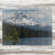 Chop and dice your food safely with this decorative, large size, glass cutting board that features a scenic, landscape photo image of snow capped Mount Hood, Oregon, and a peaceful forest lake.