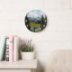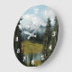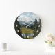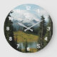 Decorate a living space with this stylish wall clock with white numerals and features a scenic, landscape photo image of beautiful, snow capped Mount Rainier, located in the Cascade Mountains of Washington State. Select your clock style and size. Use to decorate a living room, dining room, kitchen, bedroom, or any other room.