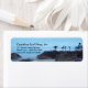 Attractive coastal view design with return address information that fits into the blue sky area of this scenic coastline view, featuring dramatic cliffs that drop into the ocean. Palm trees are highlighted by an early evening light.