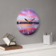 Beautiful pink sunset over a calm lake with a row of trees in the background. A lovely mixing and mingling of colorful clouds which include pink, blue, purple and yellow. Awesome and moody lighting, shadows and reflections.