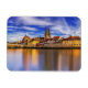 Scenic photograph of the city view of Regensburg, Germany from the Danube River. Included are various iconic points of interest include the old stone bridge and cathedral.