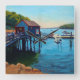 Scenic harbor in Rockport, Maine with people waiting for whale tours and renting fishing boats or sailboats. illustration from an original impressionistic oil painting by fine art painter Daniel Fishback.