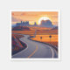 Scenic travel adventures on winding road, iconic landmarks, and a breathtaking sunsets