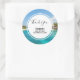 Party thank you stickers with a beautiful photo featuring a tropical beach resort.