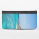 A phone case wallet with a beautiful photo featuring a tropical beach resort.