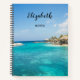 A personalized notebook with a beautiful photo featuring a tropical beach resort.