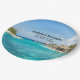 Wedding paper plates with a beautiful photo featuring a tropical beach resort.