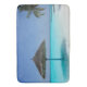 A bath mat with a photograph of a scenic tropical caribbean beach.. A white sandy beach and crystal blue waters with a solo thatched umbrella. Secluded and serene.