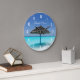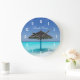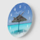 Scenic Tropical Beach with Thatched Umbrella Large Clock