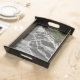 This is a well made, sturdy wooden tray with a flawless black finish and lovely map on the tray surface. It is both vintage & modern at the same time. Looks exactly like the photo; does not disappoint. So nice to find something of quality individually made and not the mass-produced 'shabby chic' merchandise seen in stores. I am so pleased to be able to give this to my college-age niece for her birthday. This can be used as a tray to hold jewelry or toiletries, or hung on the wall as art. The map surface is sealed (it is slightly shiny) so would be moisture resistant. It is well worth the asking price but I was able to apply a sale code as well. Very happy with my purchase. Map is crisp & clear and sealed with a water-resitant finish.