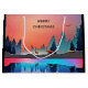A gift bag with a beautiful graphic design featuring a peaceful lake with deer. and tall pine trees being reflected in the water. Stars hover overhead.