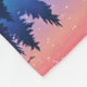 Blanket with a beautiful graphic design featuring a peaceful lake with deer. and tall pine trees being reflected in the water. Stars hover overhead.