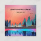 A business card with a beautiful graphic design featuring a peaceful lake with deer. and tall pine trees being reflected in the water. Stars hover overhead.
