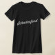 My overall review is that the T-shirt is nice, it fits true to size however the font is significantly smaller than advertised and you can't read it. The printing is unreadable and there is a strain to read it. It does not look like the advertised product. Maybe the shirt color is darker or a larger more visible font should have been used. Photos with and without flash and font is barely legible.