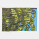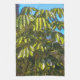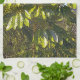 This Kitchen Towel, in a vertical layout, showers us with sunlight on green umbrellas, with a blue sky background. The artwork was made from an original photograph by ZoeSPEAK. The “umbrellas” are the leaves of a schefflera tree which grew from a little sprout in the woods.