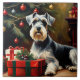 Schnauzer Dog Christmas--sitting by the Christmas tree waiting to open his Christmas present.