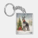 Schnauzer Dog in Snow Christmas Keychain