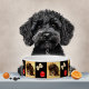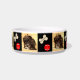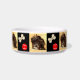 This is a heavy, durable bowl decorated with Tibbies of many colors, the perfect size for hungry/thirsty Tibs. The design is interesting and printing clear.