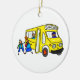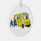 Cute cartoon whimsical illustration of a happy little girl and boy dressed in school uniform getting onboard the school bus. Easily customize and choose your own background colour or add text. Image available on various gifts and products.