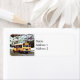 School Bus Driving Home in Winter Label