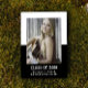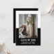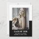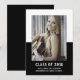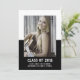School Color Block Graduation Announcement with a classy and modern two-tone photo template design in black. Add a photo and graduation details to customize. Background color on back side of invite may be changed to complement the photo or to add a school color.