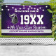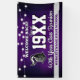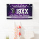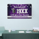 A fun reunion welcome banner featuring a string light pattern, your school colors of purple, white and silver, your school mascot image and all the event details you personalize.
