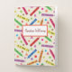 This is custom pocket folder with colorful pattern of crayons and geometric shapes like circles, triangles and squares in red, green, blue, pink, yellow and purple. Click on personalize to make the folder uniquely yours