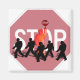 A crossing guard, holding a stop sign, with little children crossing in front of him. A reminder of a school zone or that school is back in session. A nice gift for your favorite crossing guard, who keeps your children safe on their walk to school. Magnets are available in round or square shapes.