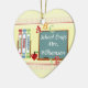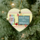 Cute school themed and personalized teacher ornament! This double sided ceramic heart ornament features a school/teacher theme with an artistic illustration of a classroom with chalkboard/blackboard, with books, an apple and ABC's and 123's too! The chalkboard area of the design reads "school days" and is ready for you to personalize with a name using our easy to use template area field on this page. Add the year to the back of the ornament as well! A wonderful addition to your ornament collection, and a great gift for family member or friend! For more teacher or school themed cards, invitations, accessories and gifts please visit our shop!