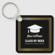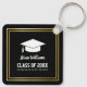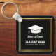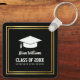 A black and white graduation design, personalized with the former student name, school and year... with the graphic image of a grad hat