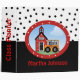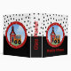 Cute teacher's custom class planner binder, with graphics of a polka dot circle, with a bus of ladybugs in front of a red little school house. The top of the binder has a white with black polka dot background, and the bottom is solid black, red text, on the front and spine are ready to personalize to say what you want. Great as teacher's planners or grade books. Makes the perfect gift for your favorite teacher. Purchase the inserts you need separately from office supply stores.