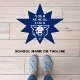 Custom floor decal for your school featuring your logo and name or tagline in simple modern typography. The color of the text can be changed to match your logo and school colors by selecting to edit in the design tool.