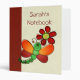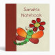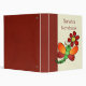 This binder on the cover has a colorful bug on it. At top you can personalize your childs name on it. Its covered in dark red.