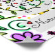 Bright, floral design with swirls, hearts and starbursts.