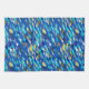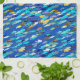 School of fish in a deep blue ocean - shades of blue, turquoise, gold and white