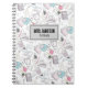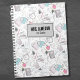 Personalize this teacher notebook with the teacher name (or student name) and the grade level or subject. You can also change the color of the frame design from the gray color it is right now. Great for teacher appreciation. Imagine a charming, simple sketched pattern featuring a delightful classroom and back-to-school motif. This pattern is the epitome of nostalgia, perfect for teachers, kids gearing up for the school year, college students, and anyone who appreciates the classic charm of school supplies. With every glance, it evokes memories of backpacks filled with books, sharpened pencils, and the endless possibilities of the classroom. This back to school pattern features books, clocks, calculators, notebooks, rulers, apples, glasses, protractors, stars and more. Mostly black and white with pops of color. Cute Personalized Name Colorful School Teacher notebook.