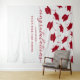Graduation party tapestry featuring a simple white background that can be changed to any color, falling red mortarboard caps, and a congratulations text template that is easy to personalize.