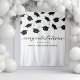 Graduation party tapestry featuring a simple white background that can be changed to any color, falling black mortarboard caps, and a congratulations text template that is easy to personalize.