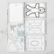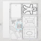 4 main panel patterns, labeled: panel 1 - front - top left panel 2 - connected to panel 3 with ribbon panel 3 - thread ribbon through circle holes panel 4 - easel back - back of frame - top part of strut leg attached with glue or hook & loop to easel back - bottom right Plus these panel patterns, on bottom left of sheet: front strut leg panel, split top and bottom - split in the middle along middle of 3 lines as shown strut leg bottom strut leg top to right on angle - box top back strut leg for glue or hook & loop pattern sky blue, 5 sided, line pattern for clear, photo safe / acid free, cut from sheet protector page, bendable strut leg piece, sandwiched between front & back - can use felt, fleece, vinyl, any substrate that is thin and bendable Instructions: Coating the sheet printable is optional, with a spray or paint on fixative from the craft store, laminate with a thinner, 3mil self laminating sheet