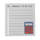 Notepad design features an original marker illustration of a blue and red math class calculator. Just personalize for a unique gift for your favorite teacher.