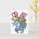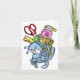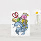 A fun design of a backpack stuffed full to overflowing of school supplies. This looks a real struggle to lift and is the perfect design for back to school stuff and more. The cartoon face on the backpack looks to be really struggling to hold all the school supplies. This school supplies design looks great on these note cards