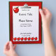 A graphic design of a clipboard with apples on a event flyer. The flyer has text templates for your personalization.