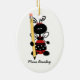 Charming ladybugs decorate this oval shaped ceramic ornament, with one on the front and another one the back of the ornament. Black graphic text, on the front, reads The best teachers teach from the heart. Custom black text reads #1 Teacher, on the front and teacher's name on the reverse side. Personalize the custom text to suit your needs. Excellent gift idea for a teacher this Christmas.