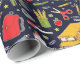 Creative teacher or student gift wrap or school party decoration featuring classroom supplies and school bus pattern.