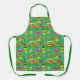 Great color and even though I ordered the kid size, it covers well enough to use during the holidays. I am not a big woman and prefer a shorter apron. I stand 5"6" and the length of the garment goes to mid-thigh. The tie straps fit well at my waist and even though there is no neck strap adjustment, the opening is plenty big enough. I am happy with the size and fit. I am sharing my apron with my 10 year old grandson, too! The color is vibrant and looks good, as shown on the website. The stitching looks strong and reinforced. Photographed is front side and back side of the apron, reinforced straps and coloring. My phone camera may not be the best at showing the details.
