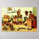 Louis Wain's naughty kittens are at school and causing havoc as usual. A cleaned reproduction of a 1905 print.