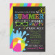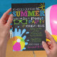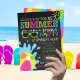 School's Out for the Summer Chalkboard Party Invite in bright blue, orange, green, pink and yellow.