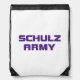 White Drawstring Backpack with Purple Schulz Army Logo