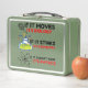 This is a standard metal lunchbox that appears to work just fine. We designed this box ourselves with an uploaded photo and custom text on the front and back. It looks absolutely beautiful except the front of the lunchbox is not centered like it shows in the photo. The print borders don't align with the inset flat part of the box where the preview photo online showed it perfectly centered in there. The back looks nice and centered though.