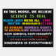 Science is real values sign -- In this house, we believe: science is real, Black Lives Matter, we're all immigrants, Love is love, Animals are equal to humans, women's rights are human rights, save humanity, save America, through public education, living wage, and single payer health system. Kindness is everything.